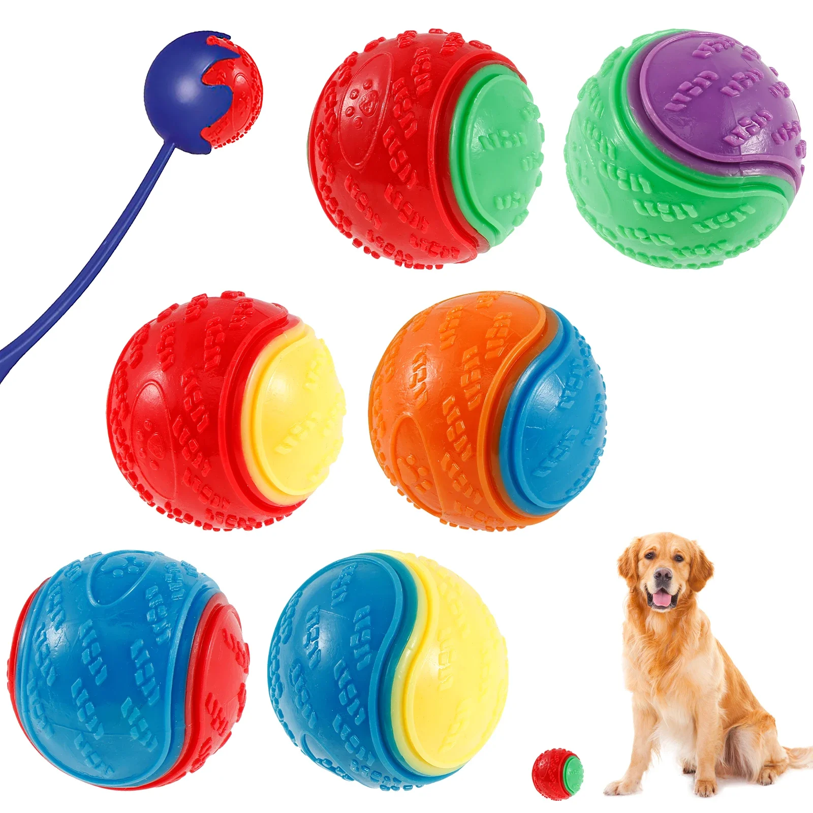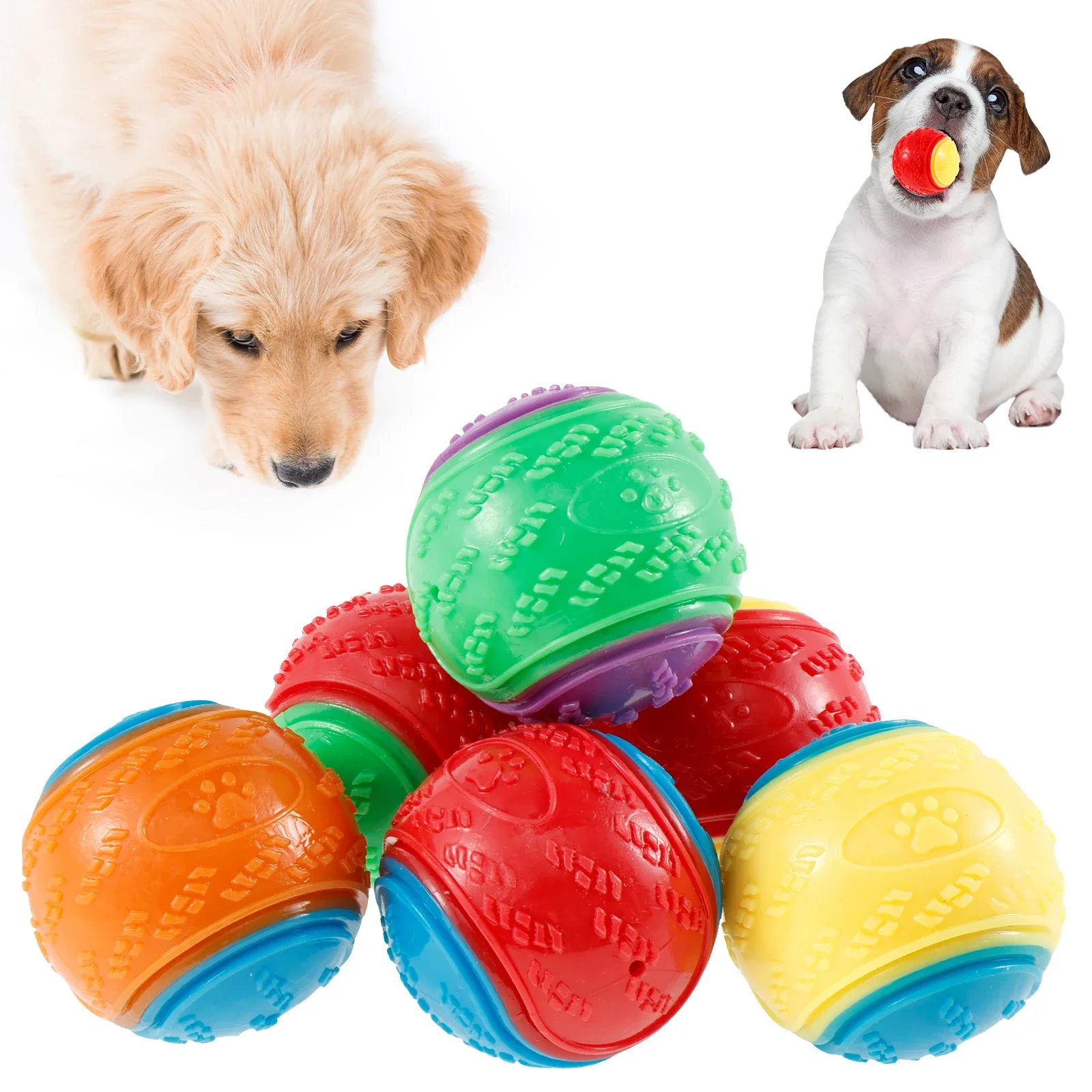 [6Pcs Set] The package comes with 6×squeaky dog balls and each ball has size of 6.5×6.5cm/2.5 ×2.5 in. The balls with 6 different vibrant color of Red + Blue, Blue + Orange, Red + Yellow, Red + Green, Green + Purple, Green + Purple. Make it easier for dogs to find them even in dimly lit environments.